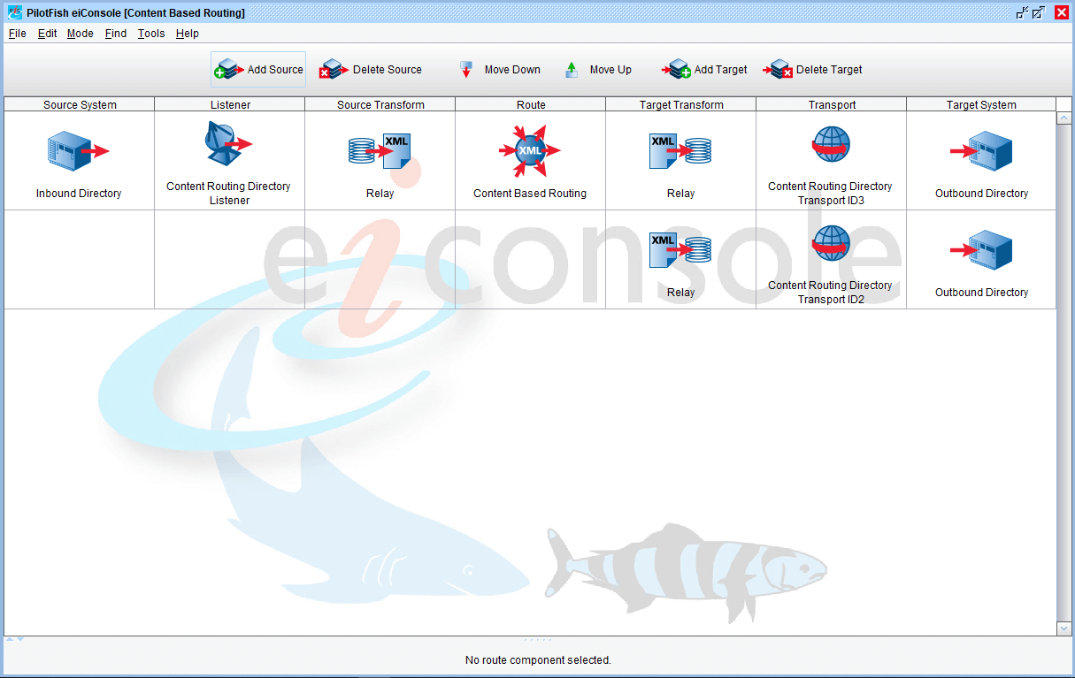 This interface has four functioning pieces: the listener, the router, and the two transports. It performs no data transformation.