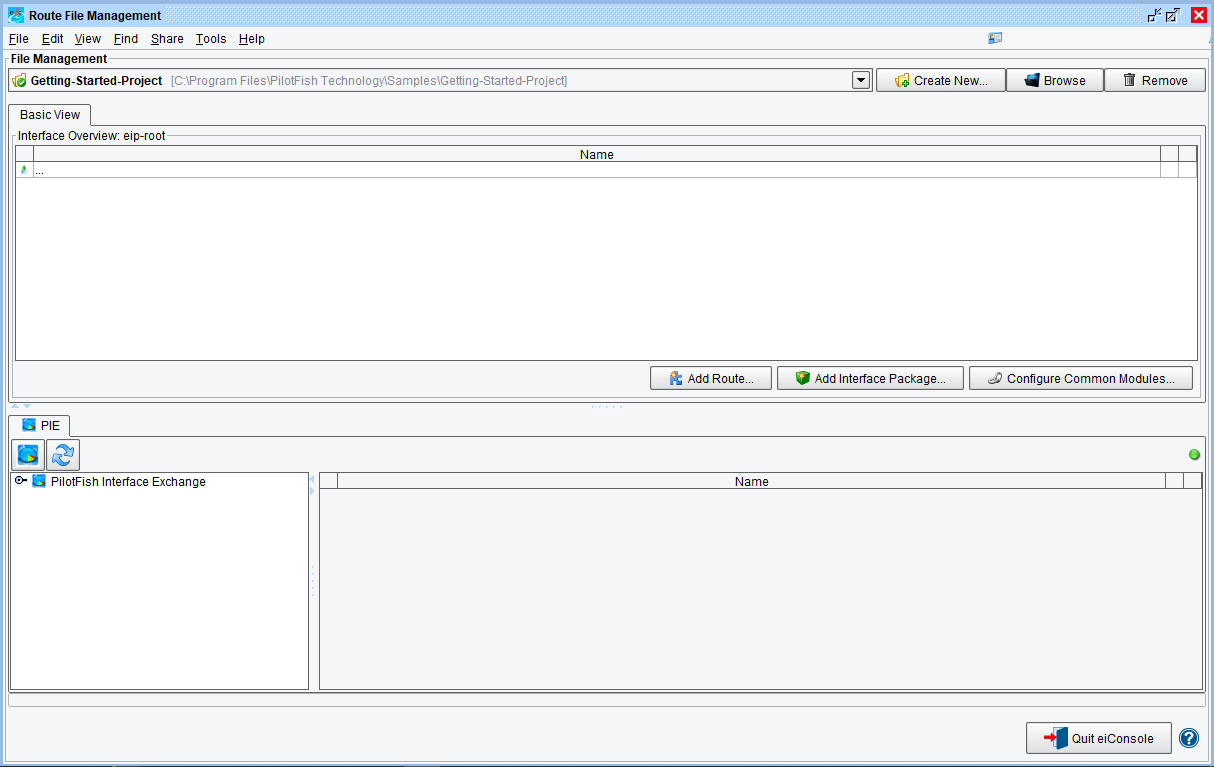 To begin, open your eiConsole. This will raise the Route File Management dialog, as above.