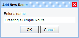 This will raise a dialog where you will be asked to provide a name for the new Route. For this exercise, we will simply name it “Creating a Simple Route”.