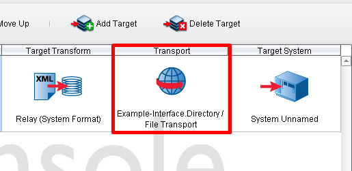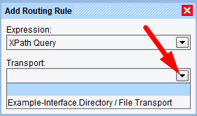 After XPath Query is selected from the dropdown menu, you will associate a target system with this Rule. Select Transport Target. You’ll be able to select from all of the fully configured transports. In our case it is only Example-Interface.Directory Transport.