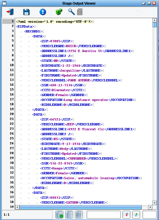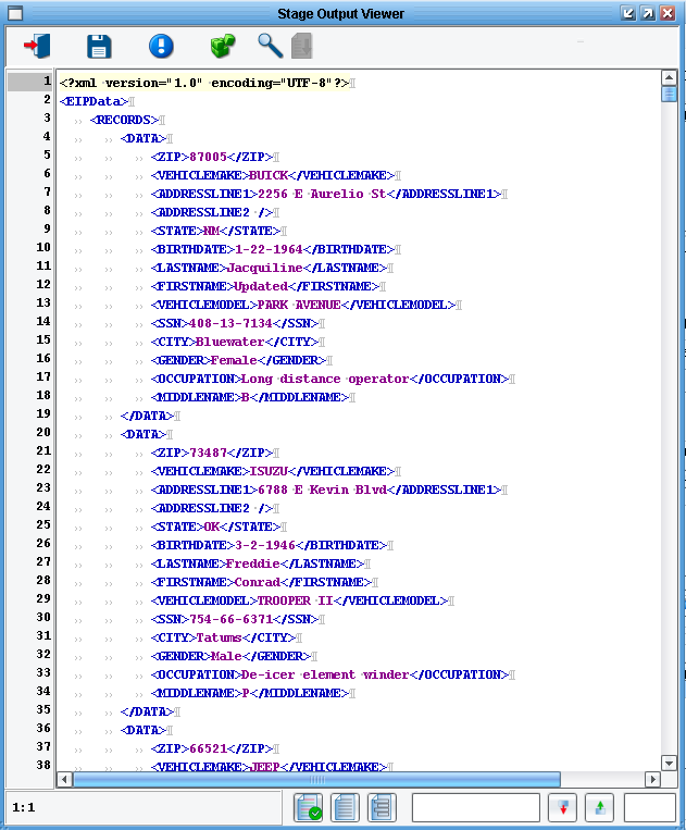 The Select instruction created a root element called “EIPData.” We then have a “RECORDS” tag, created from our variable name (“records”). Each row then becomes a “DATA” element with the corresponding columns underneath.