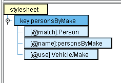 For our case, our key will map the “Make” element to “Person” elements. Drag XSLT Structures → Variable → “key” onto the “stylesheet” element: