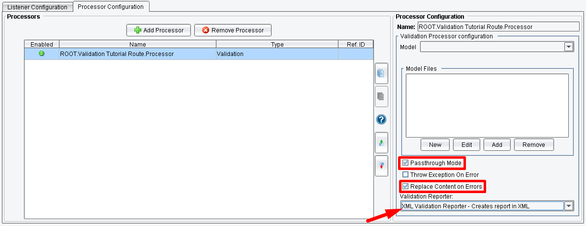 We’ll now select the Processor Configuration tab so that we can add our Validation Processor. Simply click the aforementioned tab and add a new Validation Processor: