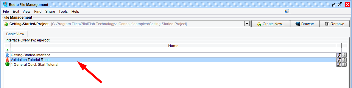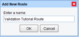 Because validation is often used as a stand-alone service or in conjunction with existing or planned components, this tutorial will cover using validation in isolation. The first thing the user should therefore do is to create a new Route in the Route File Management dialog: